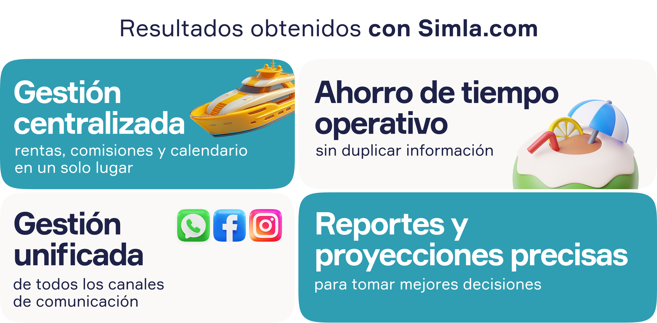 Antes de implementar Simla.com, el equipo gestionaba todo con hojas de Excel y distintos programas. Esto dificultaba la coordinación entre ventas, calendario de rentas y control de comisiones, además de consumir mucho tiempo en tareas repetitivas.