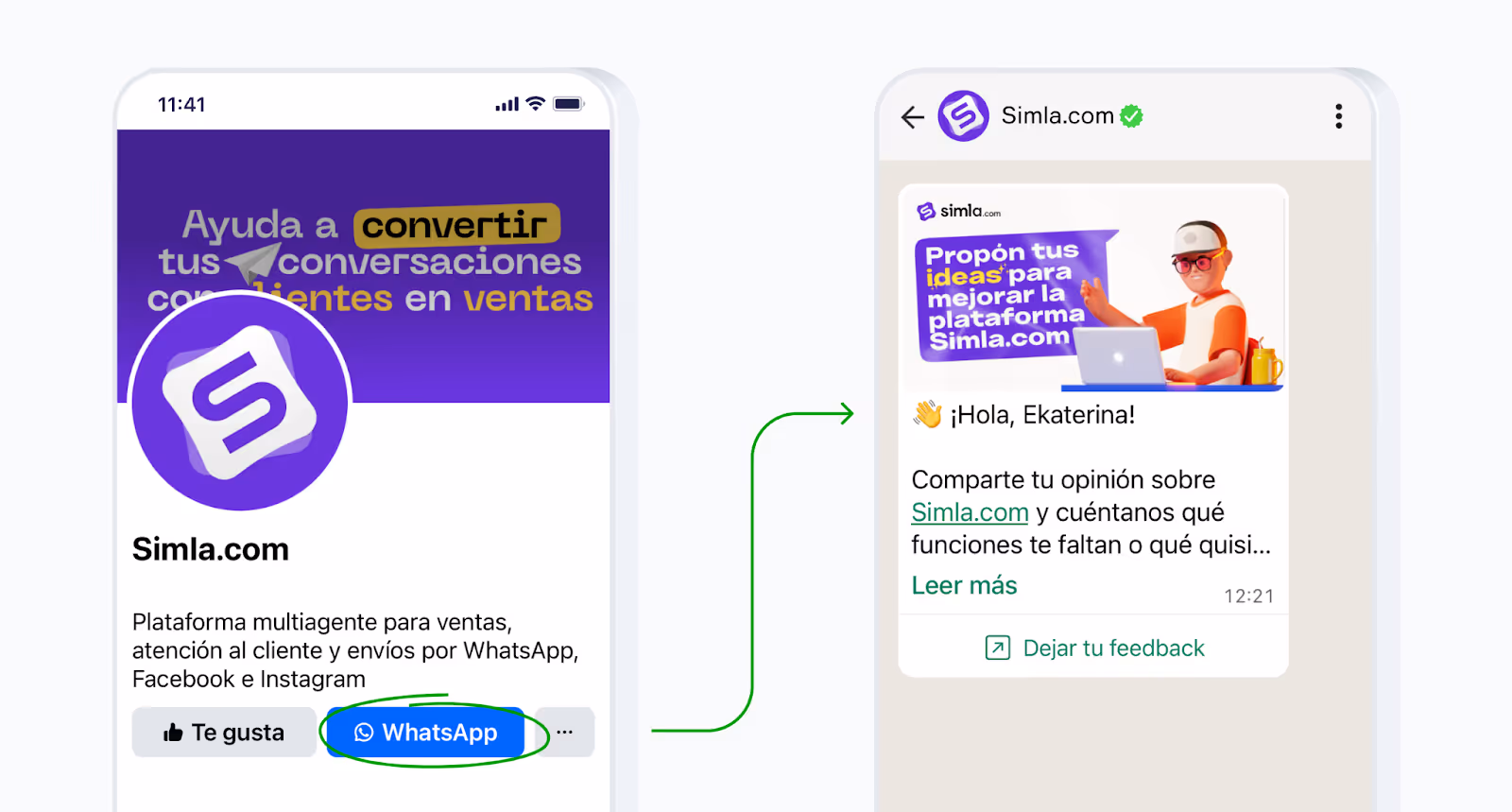 ¿Cómo no perder los leads generados por el botón de WhatsApp? Centraliza los mensajes en Simla.com: recibirás todos los chats en un único panel, podrás responder rápido, supervisar la calidad de atención y disponer de la ficha completa de cada cliente (pedidos, historial y datos de contacto) sin salir de la plataforma. ¡Pruébalo tú mismo!