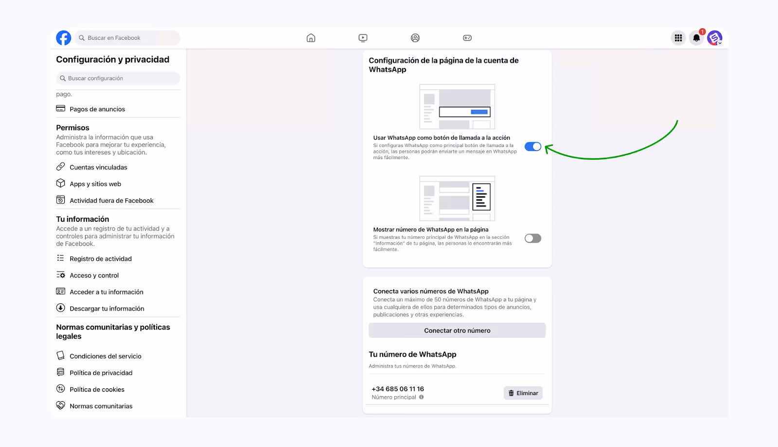 Antes de crear el anuncio de clic a WhatsApp, vincula tu cuenta de WABA con tu página de Facebook