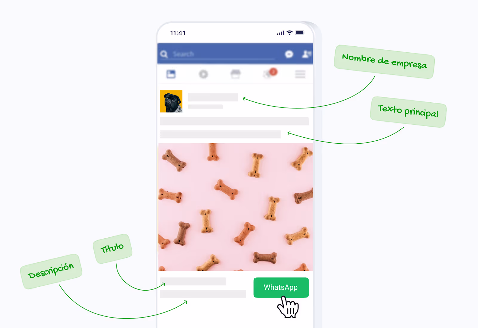 ¿Cómo agrego el CTA de WhatsApp a mis anuncios? Desde Ads Manager crea tu campaña, elige uno de los objetivos que admiten WhatsApp (Interacción, Tráfico o Ventas) y, en el conjunto de anuncios, selecciona “Apps de mensajería › Clic para enviar mensaje”. Escoge WhatsApp, vincula tu página y, en el anuncio, define la llamada a la acción “Enviar mensaje de WhatsApp”. Publica y listo.
